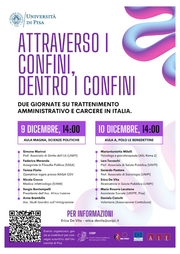 Il Convegno si propone di indagare, con uno sguardo critico e multidisciplinare, le forme contemporanee del confinamento e i meccanismi di inclusione/esclusione che esse generano. A partire dall’analisi dei Centri di Permanenza per il Rimpatrio (CPR) – luoghi di detenzione amministrativa, quindi in assenza di condanna penale – fino alla riflessione sul carcere come istituzione ambivalente, capace tanto di riprodurre disuguaglianze quanto, talvolta, di offrire un primo accesso concreto a servizi fondamentali (come la tutela della salute) per persone a lungo escluse dal sistema di welfare, l’iniziativa intende mettere in dialogo saperi accademici e pratiche sociali, esperienze di ricerca e intervento. L’obiettivo è aprire una riflessione ampia e articolata sull’efficacia, la legittimità e le possibili trasformazioni di queste forme di privazione della libertà. Nel corso del Convegno verrà anche trattato il temi concernente il quadro giuridico dell’Unione europea applicabile al trattenimento in frontiera dei cittadini di Stati terzi.