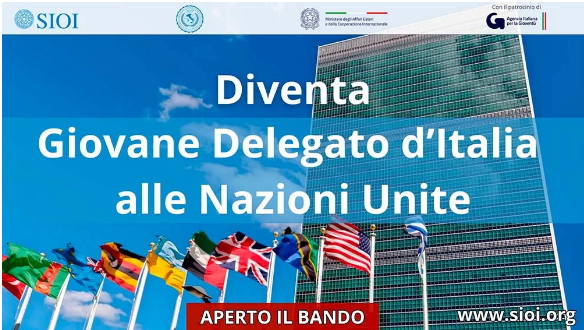 È ufficialmente aperto il nuovo bando per selezionare gli Youth Delegates italiani alle Nazioni Unite nell’ambito dello United Nations Youth Delegate Programme (UNYDP), promosso dalla Società Italiana per l’Organizzazione Internazionale (SIOI) in collaborazione con il Ministero degli Affari Esteri e della Cooperazione Internazionale.